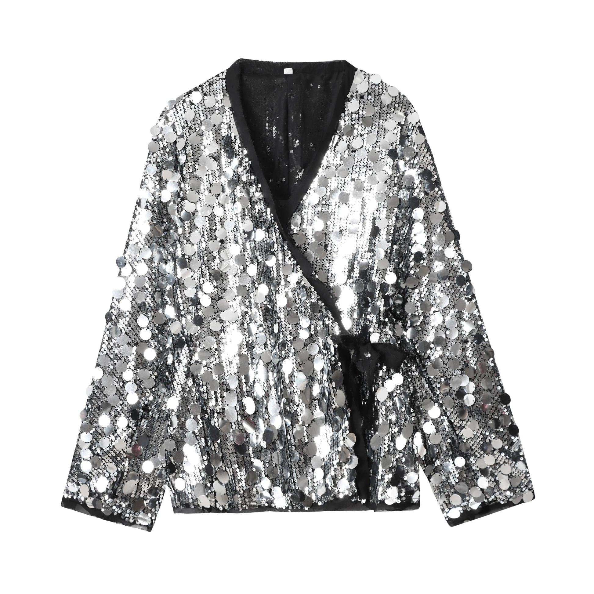 Faites briller votre style avec cette veste cristaux strass femmes sexy, une pièce iconique qui allie féminité, élégance et éclat. Recouverte de paillettes argentées et de cristaux lumineux, elle capte la lumière à chaque mouvement et attire instantanément tous les regards.